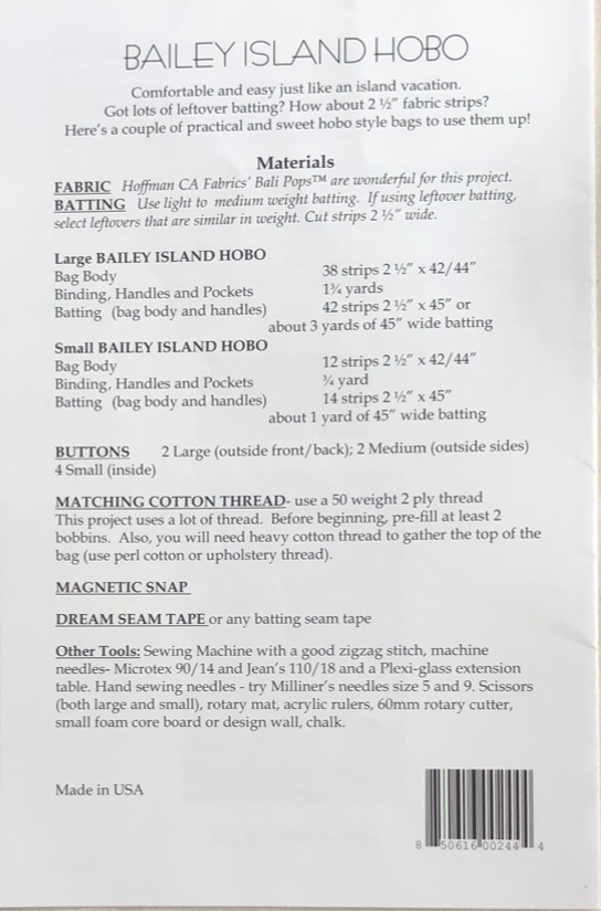 Bailey Island Hobo Pattern By Aunties Two Patterns ~ AT 244 quantity
