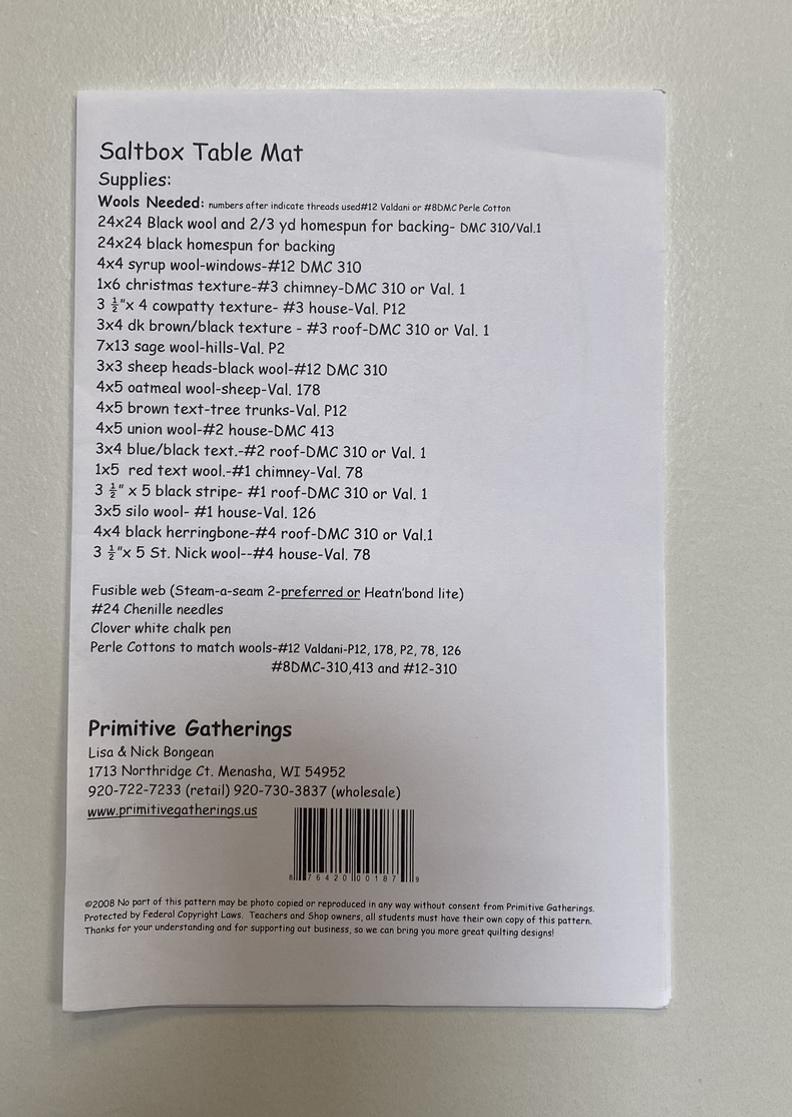 Primative Gatherings -Saltbox Table Mat Designed By Lisa Bongean