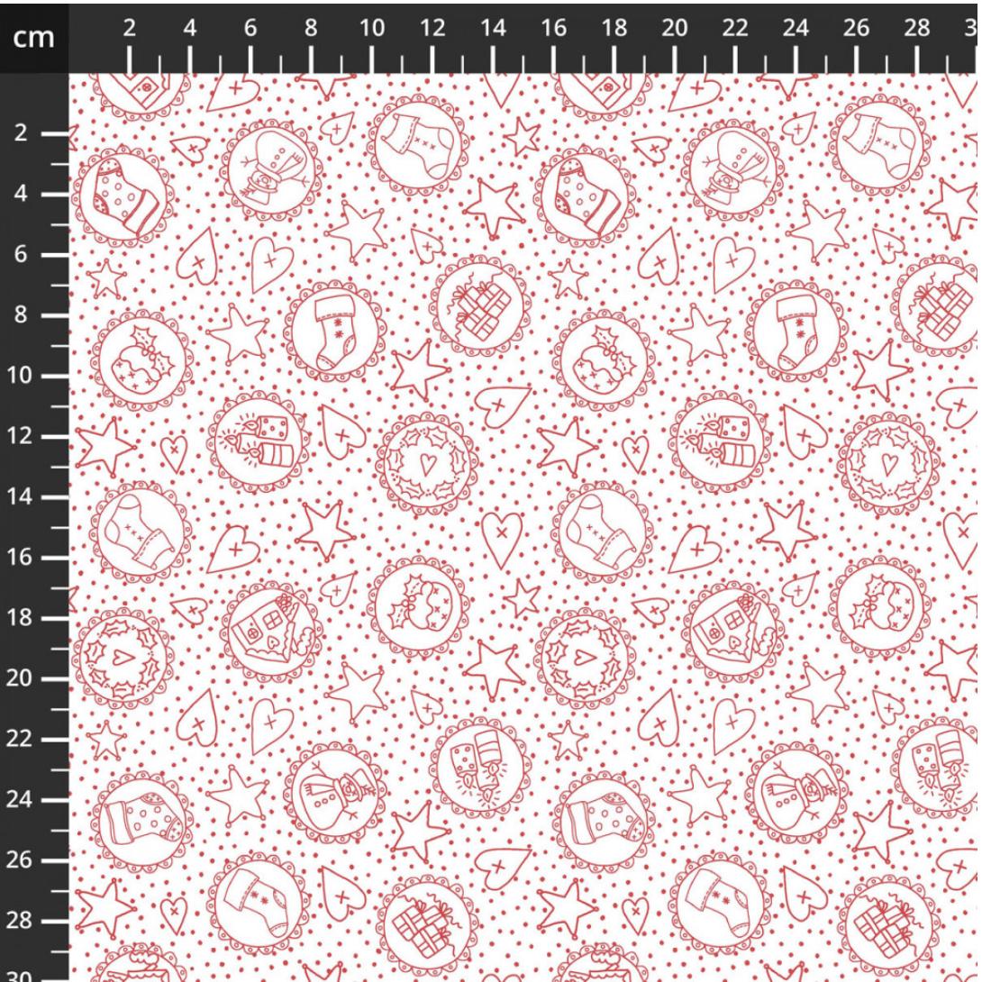 RedWork Motifs in Circles Cream from RedWork Christmas By Mandy Shaw for Henry Glass #837-08