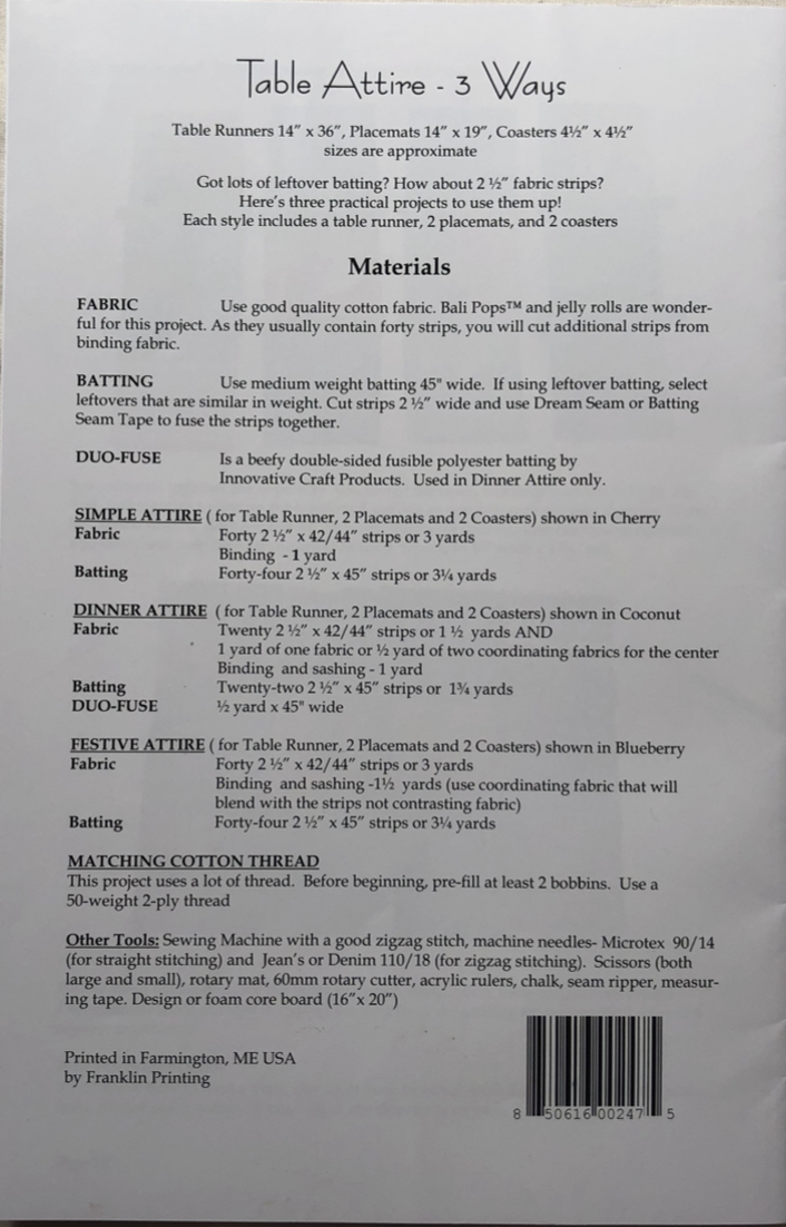 Table Attire – 3 ways Pattern By Aunties Two Patterns ~ AT 247